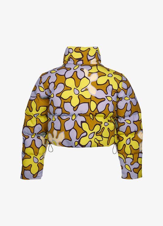 Cropped Matte Stretch Puffer - Surf Floral - Golden Lavender