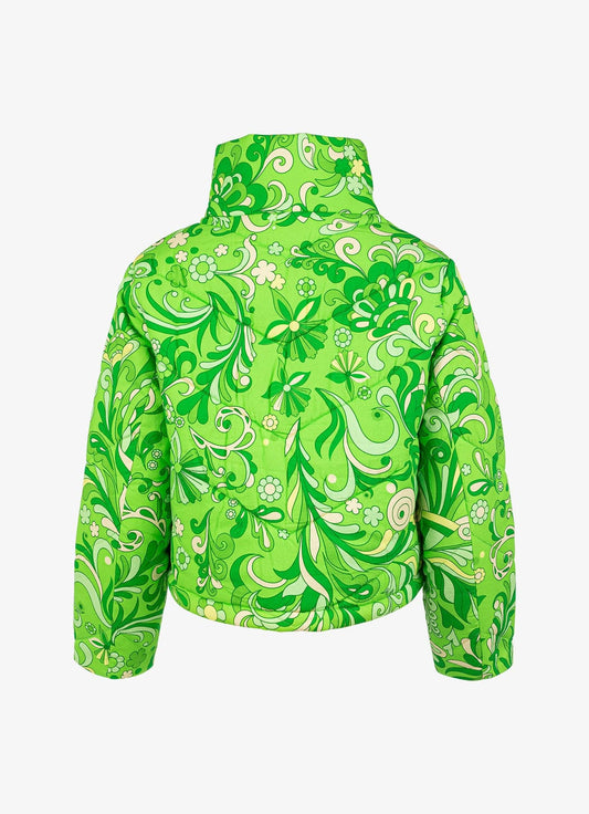 Cotton Quilted Jacket - Lime Psychedelic Floral