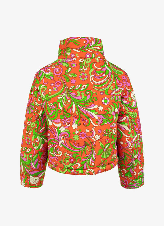 Cotton Quilted Jacket - Red Orange Psychedelic Floral