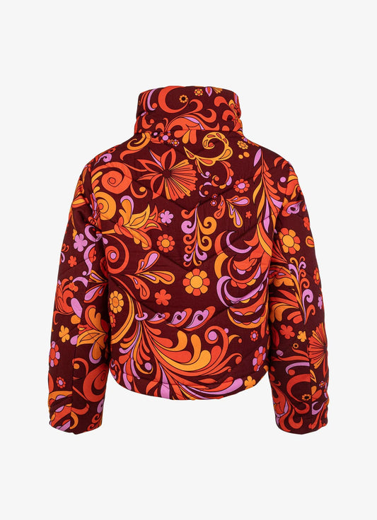 Cotton Quilted Jacket- Wine Psychedelic Floral