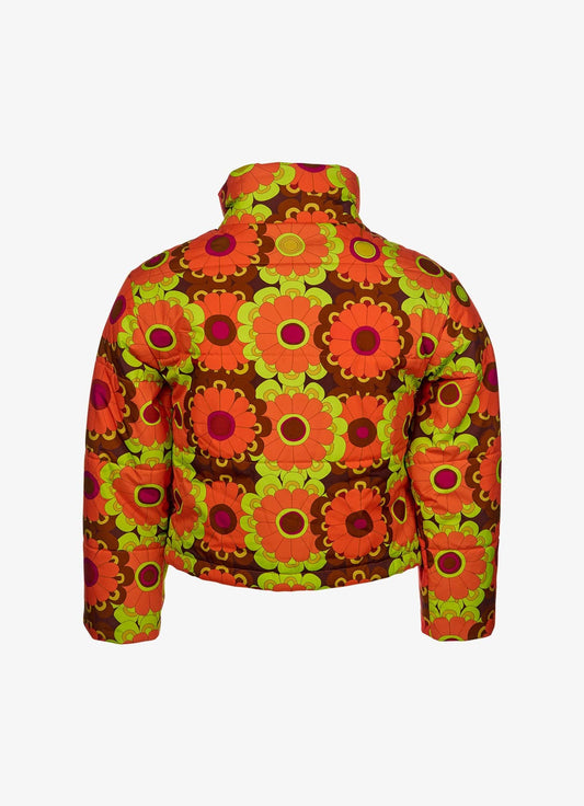 Goose Down Oversized Unisex Puffer Jacket - Orange Vintage Floral